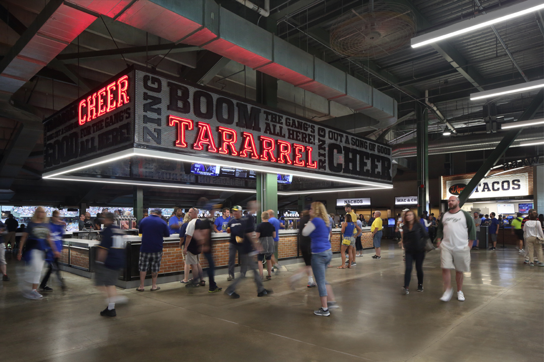 The Milwaukee Brewers concessions project is located within American Family Field (formerly Miller Park) in Milwaukee, Wisconsin. Hunzinger served as general contractor for the revamped concession stands that “completely transform” the food and beverage offerings at AFF, and include 11 new concession stands with a heavy emphasis on local eateries and beverages. The project, designed by Ramlow Stein Architects + Interiors (formerly Uihlein Wilson Architects), spanned all seating levels of the ballpark and reflects the rich architectural history of Milwaukee. Hunzinger self-performed concrete and carpentry on the project and installed state-of-the-art equipment in the permanent concession stands and portable locations to enhance the quality of the offerings while providing 33% more points of sale for faster service. The right field side of the Loge Level hosts an “Local Brews” Bar that features 30 taps serving craft beers from across Wisconsin.