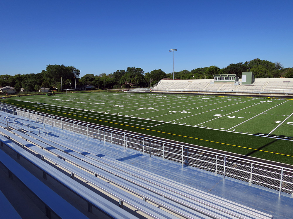 This renovation included replacing the existing grass field with a new synthetic field turf. It is lined with both football and soccer demarcations. The stadium project included the installation of all new bleachers, a renovated press box, an elevator, interior renovations to the east and west stadiums which include locker rooms and restrooms.