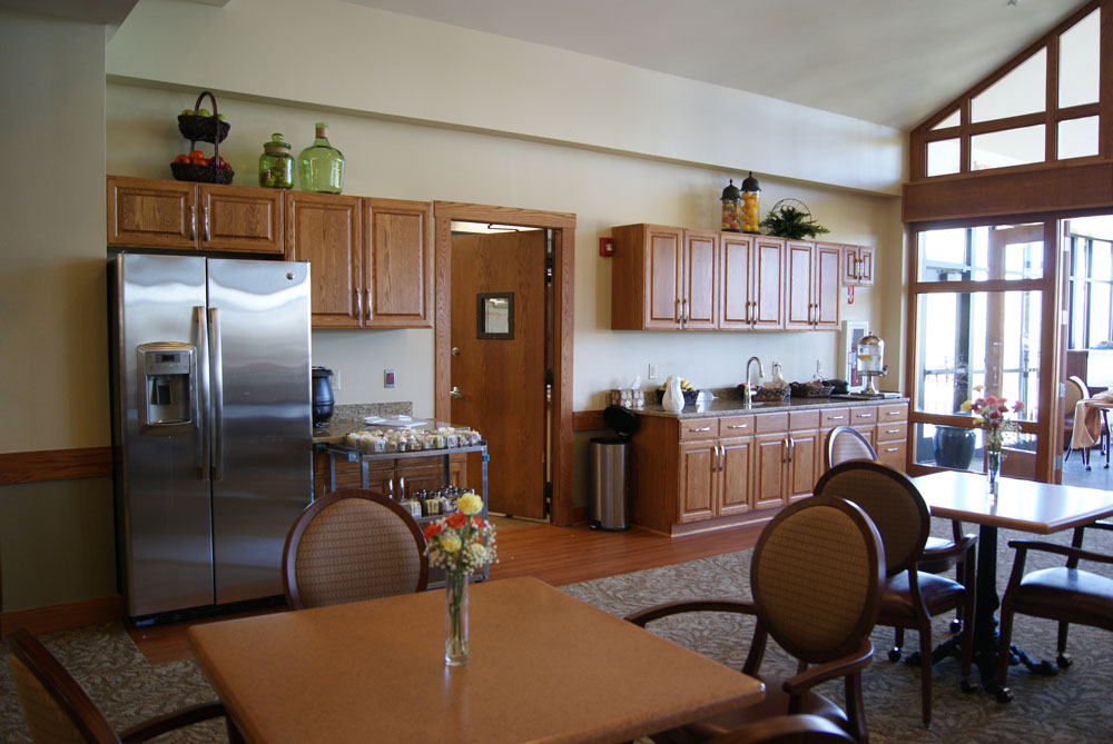 The extensive renovations included new flooring and paint throughout, new memory boxes, stud wall construction, a new lean rail system throughout, and hard tile in the resident restroom floors. In addition, updated energy efficient entry lights were installed, new wooden shelving units and corridor niche storage units were built in place and extensive library and kitchen redesigns and updates were completed. Hunzinger also connected a new generator for emergency power backup. Our forces were responsible for demolition, concrete, masonry and all carpentry on the project, and all construction services were delivered in a fully operational environment without any interruption of services to the residents.