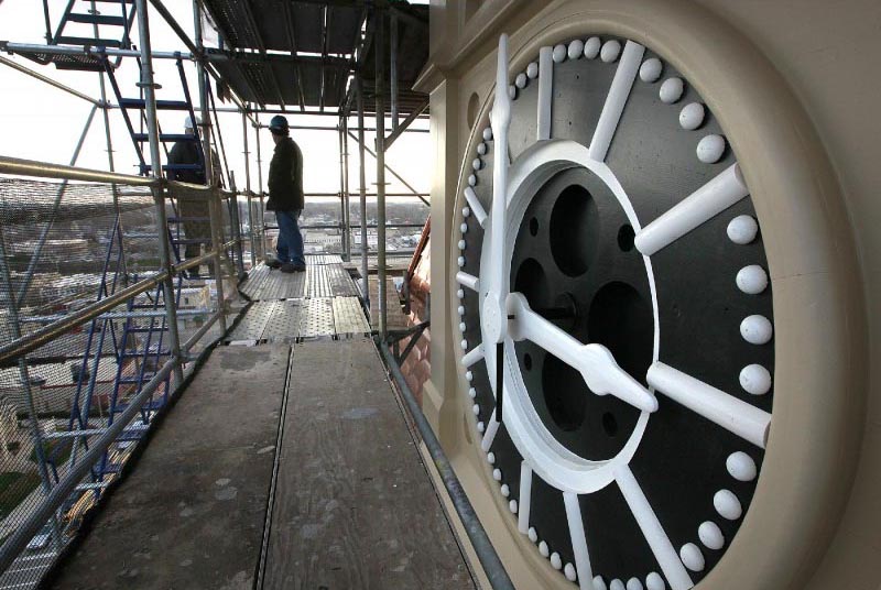 Hunzinger’s scope of work included the reconstruction of the clock faces, dormers, louvers and steeple connection points at the historic building. Much of this work Hunzinger completed at our Brookfield, Wisconsin Headquarters. Our field staff worked tirelessly to replicate historical elements in our shop then transported and installed these features onsite. This project required extreme attention to detail and historical accuracy to successfully restore the roof, steeple and clock faces of this extraordinary church. A not-for-profit foundation was established to raise funds for the church’s restoration.